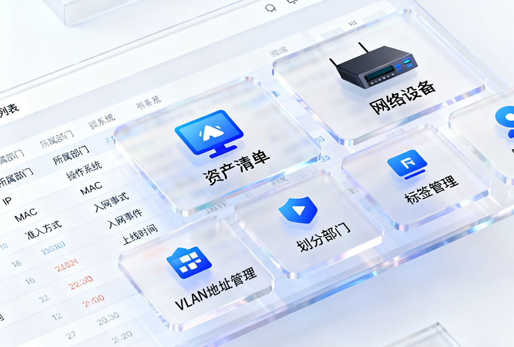 ● 资管中心:资管中心包含终端列表、网络设备、资产清单、VLAN管理、IP地址管理、标签管理等模块。终端列表显示所有终端信息,这些信息可以通过自动探测或手动添加获取。终端信息包括所属部门、操作系统、IP和MAC等设备相关信息,以及准入方式、入网事件、上线时间等信息。同时,可以对终端进行一系列操作,如解除或绑定IP、划分部门、绑定责任人等。